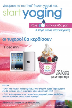 Το Start Yoging Bars διοργανώνει διαγωνισμό και σας δίνει τη δυνατότητα να κερδίσετε 1 ipad mini & 30 loonie κυπελάκια με 2 toppings.