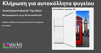 Το stickit.gr διοργανώνει διαγωνισμό και σας δίνει τη δυνατότητα να κερδίσετε αυτοκόλλητο ψυγείου 3D.