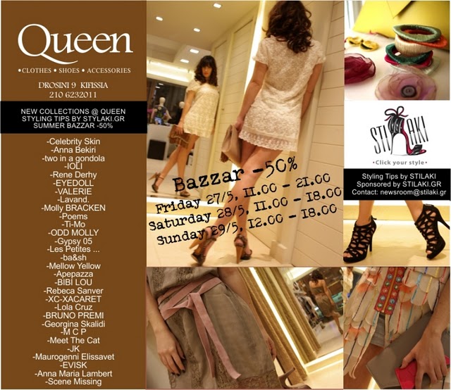 Η αγαπημένη μας Boutique ρούχων και αξεσουάρ QUEEN σε συνεργασία με το STILAKI.GR, διοργανώνουν ένα μοναδικό ΔΙΑΓΩΝΙΣΜΟ στα πλαίσια του Fashion Event που θα πραγματοποιηθεί στις 27, 28 και 29 Μαΐου στο κατάστημα QUEEN, Δροσίνη 9 Κηφισιά.
