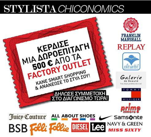 Το Stylista.gr σε συνεργασία με τα FACTORY OUTLET διοργανώνουν διαγωνισμό και σας δίνουν τη δυνατότητα να κερδίσετε συνολικά 3 δωροεπιταγές αξίας 500€ η καθεμία για shopping!
