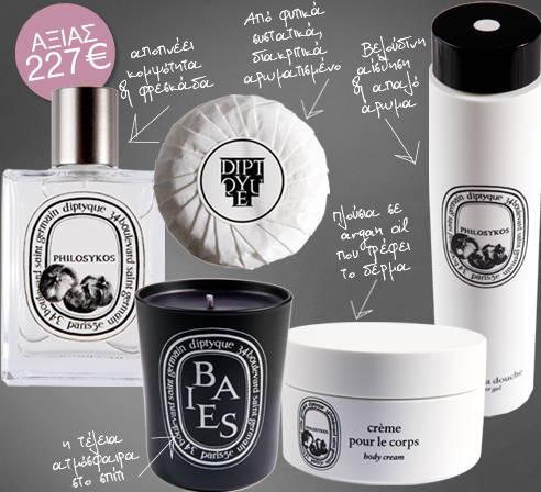 To Stylista.gr διοργανώνει έναν ακόμη διαγωνισμό και σας δίνει τη δυνατότητα να κερδίσετε 4 σετ που περιλαμβάνουν το eau de toilette, το shower gel, το σαπούνι και την πολυτελή κρέμα σώματος Philosykos καθώς και το κερί Baies της εταιρείας Diptyque, συνολικής αξίας 227 ευρώ!