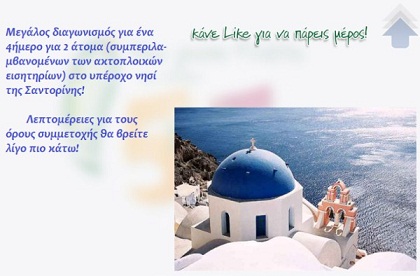 Το Summer Time in Greece διοργανώνει διαγωνισμό και σας δίνει τη δυνατότητα να κερδίσετε ένα 4ήμερο στη Σαντορίνη με δωρεάν ακτοπλοϊκά εισιτήρια.
