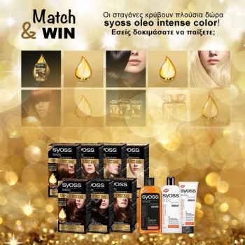 Η σελίδα Syoss Greece διοργανώνει διαγωνισμό και δίνει τη δυνατότητα σε 10 τυχερούς να κερδίσουν από 1 πακέτο περιποίησης μαλλιών Syoss Oleo Intense (σαμπουάν, μαλλακτική κρέμα και μάσκα μαλλιών) και σε 50 ακόμα να κερδίσουν από 1 βαφή Syoss Oleo Intense.