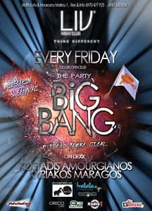 Το party του χειμώνα, έχει όνομα και είναι το Big Bang The Party στο LIV και στο τα Νέα σου το ξέρουν καλά. Για μια ακόμη φορά λοιπόν, σας κερνάνε για αυτή την Παρασκευή 26 Οκτωβρίου 1 μπουκάλι για 6 άτομα.
