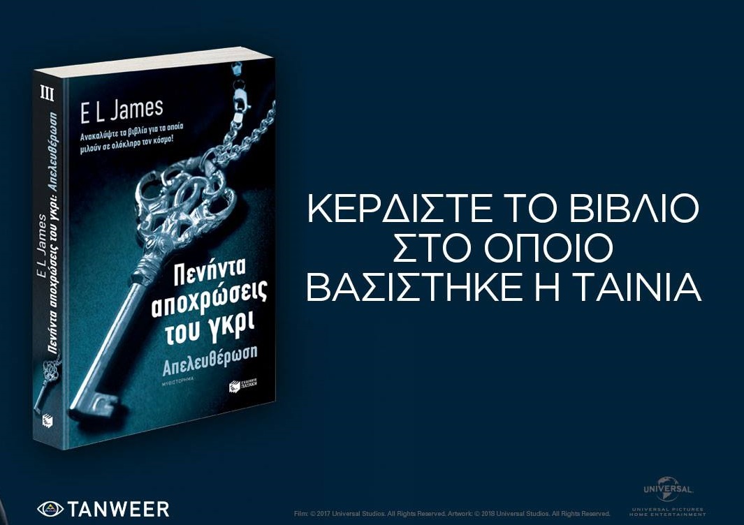 H Tanweer διοργανώνει διαγωνισμό και δίνει τη δυνατότητα σε 5 τυχερούς να κερδίσουν από ένα αντίτυπο του bestseller βιβλίου «Πενήντα Αποχρώσεις του Γκρι: Απελευθέρωση»!