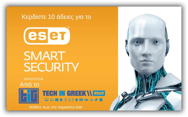 Το techingreek.com διοργανώνει διαγωνισμό και σας δίνει τη δυνατότητα να κερδίσετε 10 άδειες της εφαρμογής Eset Smart Security για την προστασία του υπολογιστή σας!
