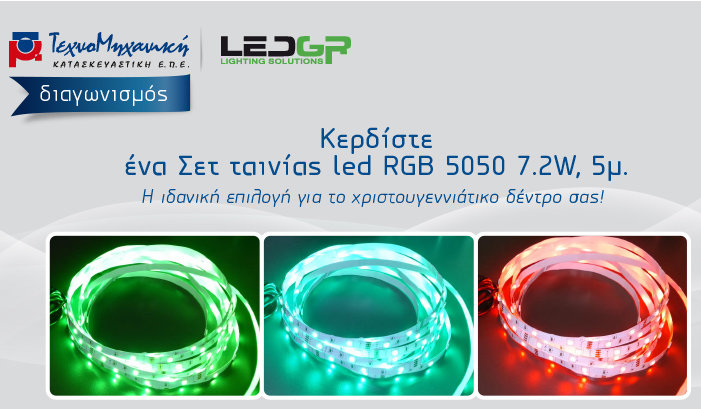 Η ΤεχνοΜηχανική διοργανώνει διαγωνισμό και σας δίνει τη δυνατότητα να κερδίσετε σετ ταινίας led RBG 5050 7.2W, 5μ.!
