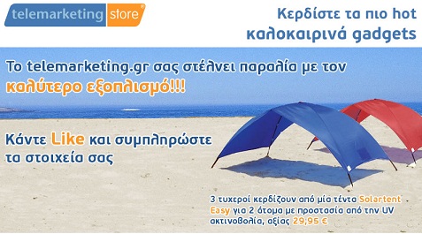 Διαγωνισμός telemarketing.gr με δώρο 3 τέντες παραλίας