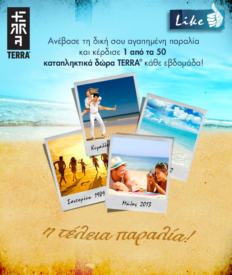 Η σελίδα Terra Beach & Camping διοργανώνει διαγωνισμό και σας δίνει τη δυνατότητα να κερδίσετε 1 από τα 50 καταπληκτικά δώρα Terra κάθε εβδομάδα.