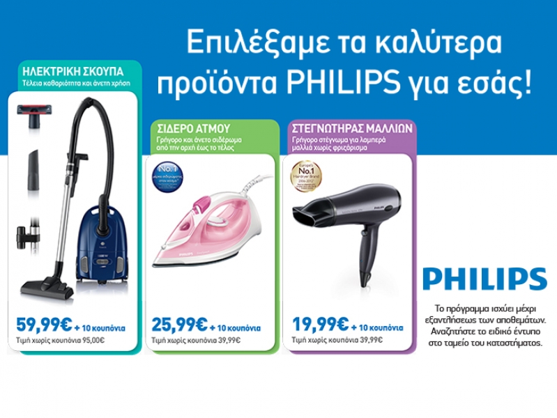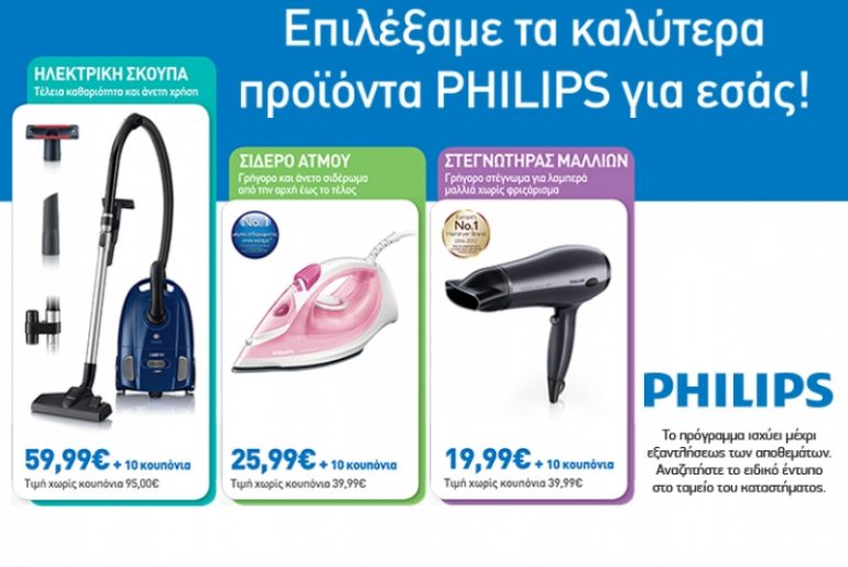 Το thatslife.gr διοργανώνει διαγωνισμό και σας δίνει τη δυνατότητα να κερδίσετε τα Best seller προϊόντα της Phillips: στεγνωτήρα μαλλιών, ένα σίδερο ατμού, μία ηλεκτρική σκούπα και μία τοστιέρα, από το πρόγραμμα που τρέχει αυτή την περίοδο στα καταστήματα ΑΒ Βασιλόπουλος.