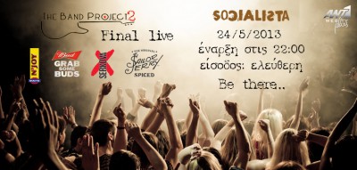 Το Final Live του The Band Project 2 έρχεται! Οι Deadbeat Escapement και οι 5 Εποχές διαγωνίζονται για τη νίκη, κι εσείς μπορείτε να κερδίσετε θέση στην αναμέτρηση! Απάντησε σωστά στην ερώτηση και κερδίστε θέση με την παρέα σας σε ένα από τα 3 prive τραπέζια στο FINAL LIVE του The Band Project 2 στο Socialistas! 10 ακόμη τυχεροί θα κερδίσουν πακέτα με προϊόντα Bud, Serkova και Sailor Jerry και 15 ακόμη θα κερδίσουν πακέτα συλλεκτικών δώρων!