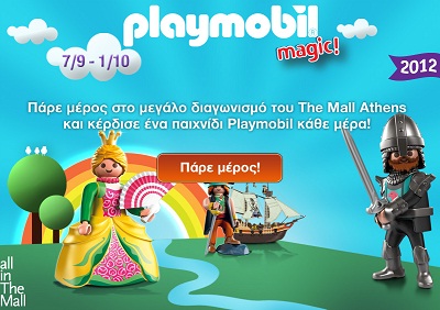 Η σελίδα του The Mall Athens στο facebook διοργανώνει διαγωνισμό και σας δίνει τη δυνατότητα να κερδίσετε ένα παιχνίδι Playmobil κάθε μέρα.