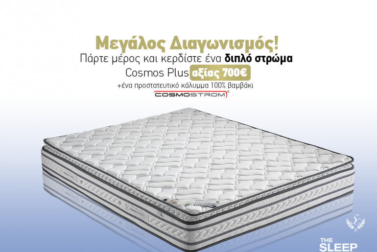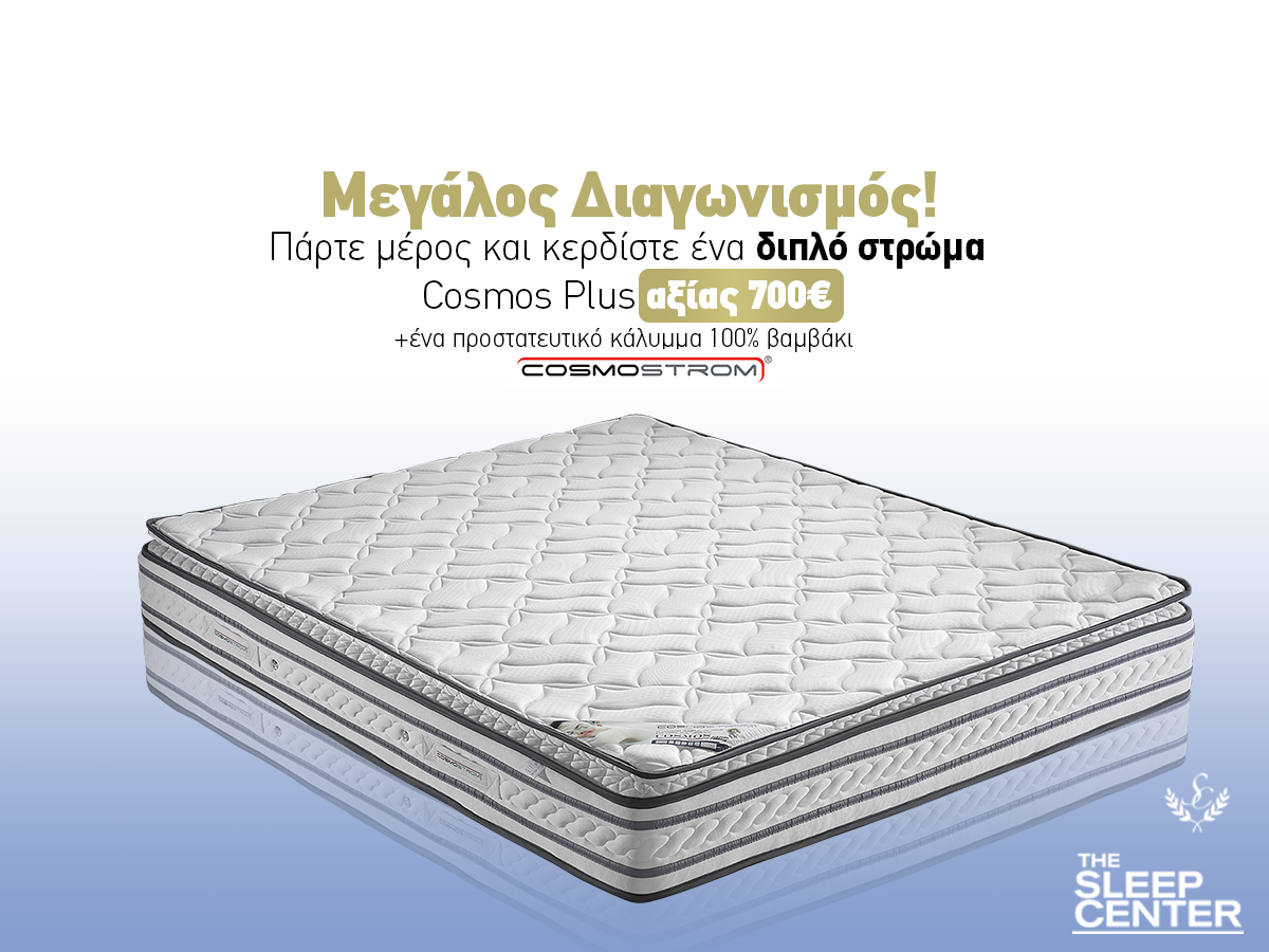 Το The Sleep Center διοργανώνει διαγωνισμό και σας δίνει τη δυνατότητα να κερδίσετε ένα διπλό στρώμα Cosmos Plus αξίας 700€ και ένα προστατευτικό κάλυμμα 100% βαμβάκι!