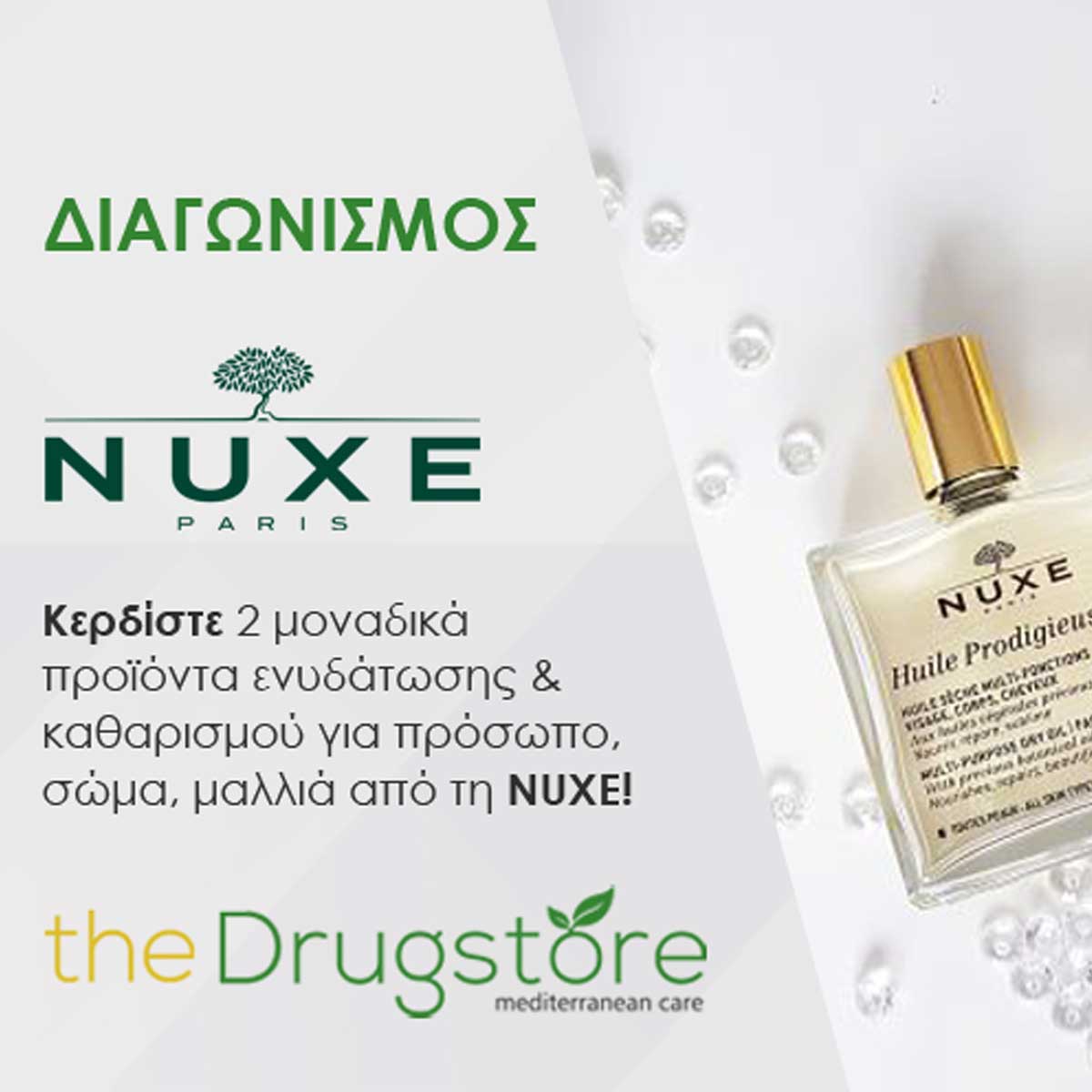 Το φαρμακείο theDrugstore διοργανώνει διαγωνισμό και σας δίνει τη δυνατότητα να κερδίσετε 2 μοναδικά προϊόντα ενυδάτωσης & καθαρισμού από τη Nuxe για πρόσωπο, σώμα & μαλλιά!