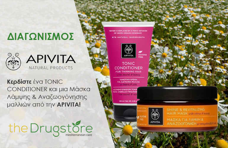 Το theDrugstore διοργανώνει διαγωνισμό και σας δίνει τη δυνατότητα να κερδίσετε ένα Tonic Conditioner & μία μάσκα λάμψης & αναζωογόνησης μαλλιών από την Apivita!