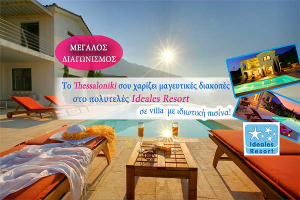 Η σελίδα Thessaloniki διοργανώνει διαγωνισμό και σας δίνει τη δυνατότητα να κερδίσετε 4 διανυκτερεύσεις (5 ημέρες) σε μια Grand βίλα 2 υπνοδωματίων (4ων ατόμων). Δώρο αξίας 540 € !