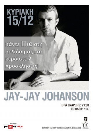 Το Tiki Bar Athens, δίνει τη δυνατότητα σε δύο τυχερούς να κερδίσουν από μία πρόσκληση για τη συναυλία του Jay-Jay Johanson την Κυριακή 15/12.
