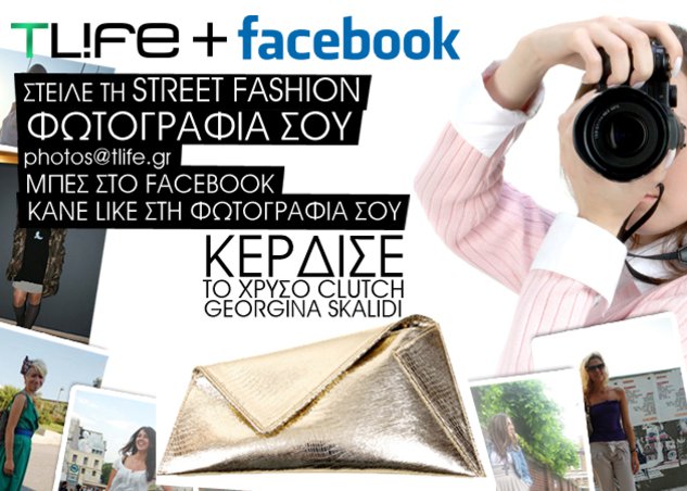 Θέλεις να κερδίσεις ένα χριστουγεννιάτικο φάκελο από την σχεδιάστρια Georgina Skalidi; Στείλε τη δική σου φωτογραφία στο e-mail: photos@tlife.gr για την στήλη STREET FASHION και μπες στο διαγωνισμό!