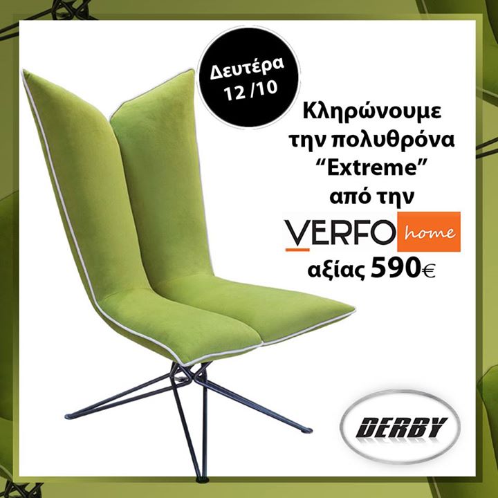Το Derby διοργανώνει διαγωνισμό και σας δίνει τη δυνατότητα να κερδίσετε μία μοναδική πολυθρόνα, αξίας 590€, που προσφέρει η Verfo Home!