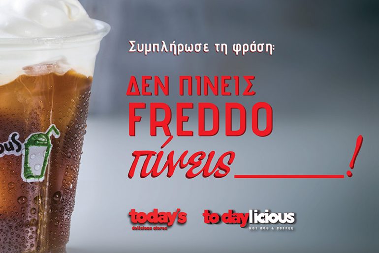 To Todaylicious διοργανώνει διαγωνισμό και δίνει τη δυνατότητα σε 10 τυχερούς να απολαμβάνουν για 10 μέρες, από το κατάστημα που θα επιλέξουν να τους εξυπηρετεί, το νέο ρόφημα Freddo Velluto και μια Τυρόπιτα Σφολιάτα!