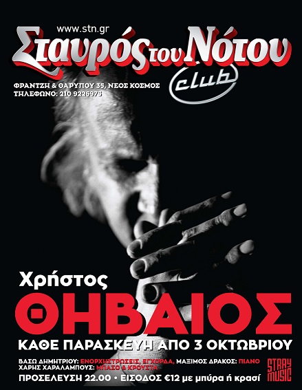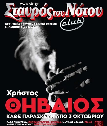 Το toradiofono.gr διοργανώνει διαγωνισμό και σας δίνει τη δυνατότητα να κερδίσετε 3 διπλές προσκλήσεις για την παράσταση του Χρήστου Θηβαίου στο Σταυρό του Νότου Club, την Παρασκευή 17 Οκτωβρίου.
