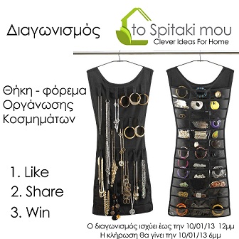 Η σελίδα tospitakimou.gr διοργανώνει διαγωνισμό και σας δίνει τη δυνατότητα να κερδίσετε ένα κρεμαστό φόρεμα με θήκες για οργάνωση των κοσμημάτων σας.
