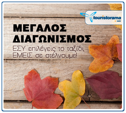 Νέος μεγάλος διαγωνισμός! Το Τουριστόραμα ευχαριστεί τους φίλους του για την προτίμησή τους και τους στέλνει διακοπές στον προορισμό που θα επιλέξουν! Πάρτε μέρος τώρα στην πρώτη κλήρωση. Θα κληρωθούν 3 ταξίδια δύο διανυκτερεύσεων στον προορισμό που έχει επιλεχθεί από τον κάθε νικητή. Το ταξίδι είναι για 2 άτομα (νικητής + 1 άτομο της επιλογής του).