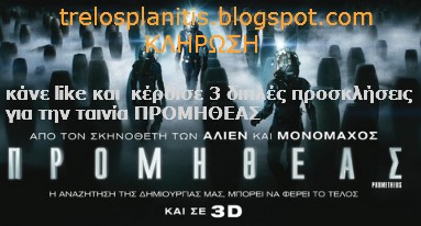 Διαγωνισμός του TrelosPlanitis.blogspot.com με δώρο 3 διπλά κινηματογραφικά εισιτήρια για την ταινία ΠΡΟΜΗΘΕΑΣ