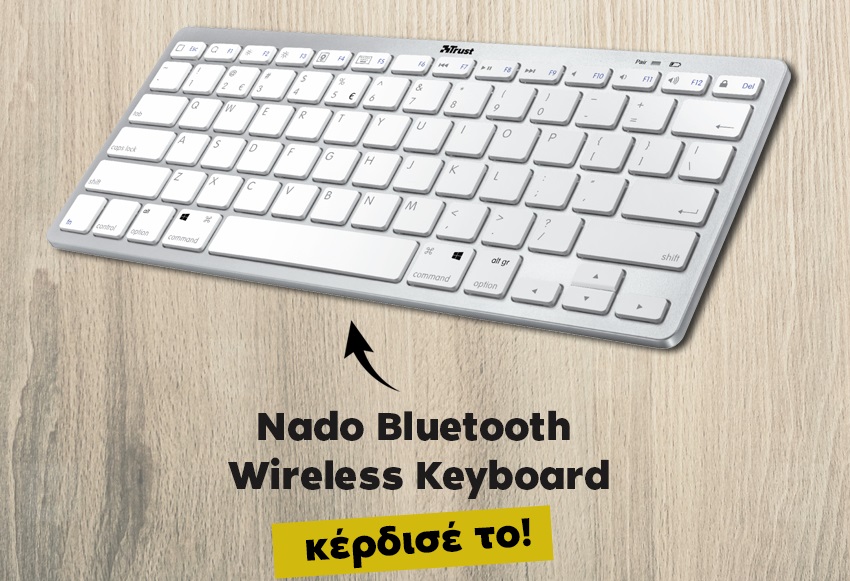 Η σελίδα Trust Gaming διοργανώνει διαγωνισμό και δίνει τη δυνατότητα σε 2 τυχερούς να κερδίσουν από ένα Nado Bluetooth Wireless Keyboard, το εξαιρετικά λεπτό, ελαφρύ και ασύρματο πληκτρολόγιο για PC, laptop, tablet, smartphone!