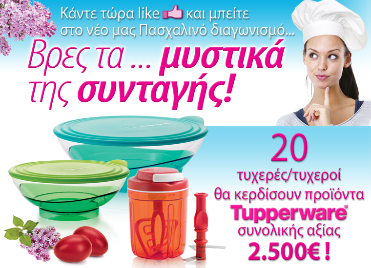 Η Tupperware Greece διοργανώνει διαγωνισμό στο Facebook και δίνει τη δυνατότητα σε 20 τυχερούς να κερδίσουν προϊόντα Tupperware συνολικής αξίας 2.500€.