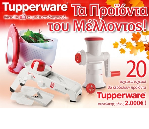 H Tupperware Greece διοργανώνει διαγωνισμό και δίνει τη δυνατότητα σε 20 τυχερούς να κερδίσουν από 3 προϊόντα Tupperware που απεικονίζονται στη φωτογραφία!