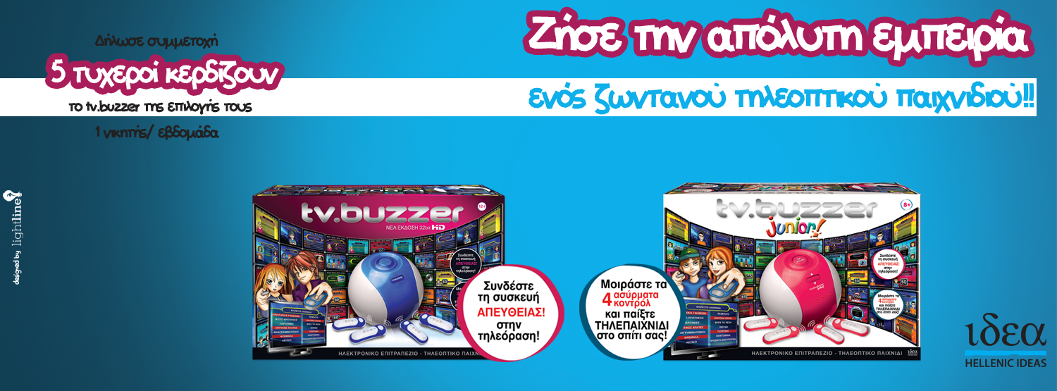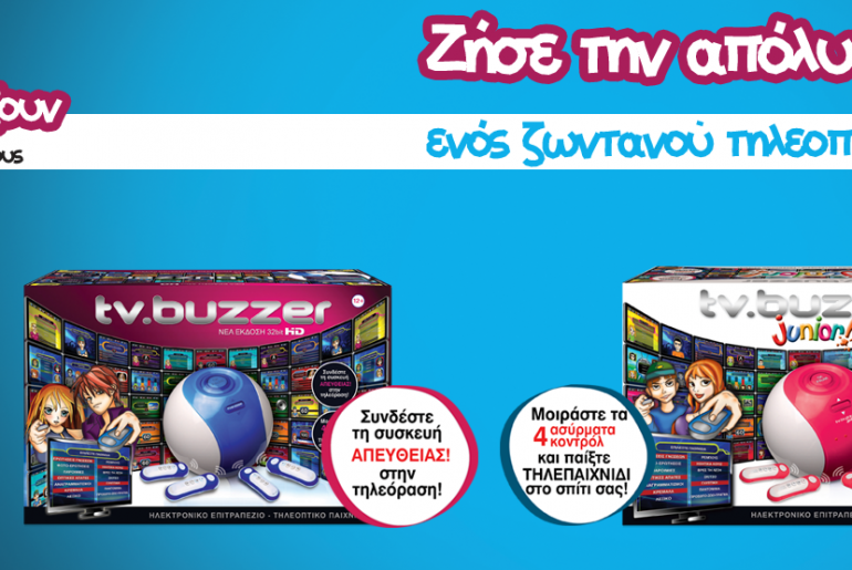 Το tvbuzzer.gr διοργανώνει διαγωνισμό και σας δίνει τη δυνατότητα να κερδίσετε το Tv Buzzer, το παιχνίδι που μεταφέρει την απόλυτη εμπειρία ενός ζωντανού τηλεοπτικού παιχνιδιού!