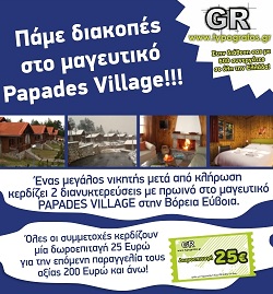 Η εταιρεία typografos.gr διοργανώνει διαγωνισμό και σας δίνει τη δυνατότητα να κερδίσετε μία διαμονή 2 ημερών στο ξενοδοχείο Papades Village.