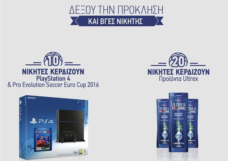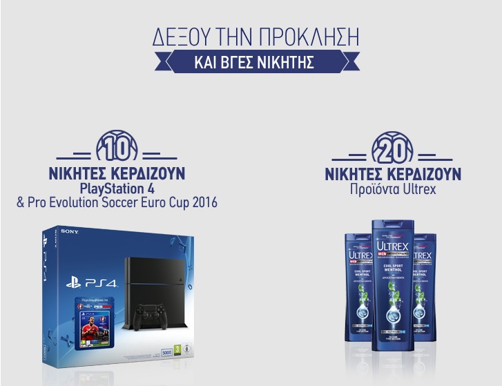 To Ultrex διοργανώνει διαγωνισμό και δίνει τη δυνατότητα σε 10 τυχερούς να κερδίσουν από ένα Sony Playstation 4 500GB μαζί με το παιχνίδι Pro Evolution 2016 Euro Edition! Ακόμη 20 τυχεροί κερδίσουν προϊόντα Ultrex!