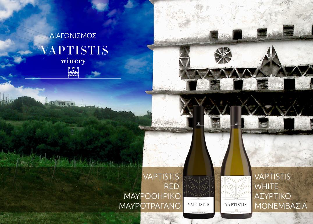 Η Vaptistis Winery διοργανώνει διαγωνισμό και δίνει τη δυνατότητα σε 2 τυχερούς να κερδίσουν από 2 φιάλες κρασιών σε ειδικές συσκευασίες!