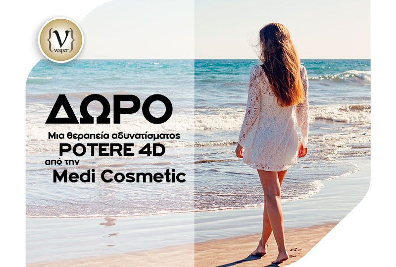 To Vesper διοργανώνει διαγωνισμό και σας δίνει τη δυνατότητα να κερδίσετε μία ολοκληρωμένη θεραπεία αδυνατίσματος με την μέθοδο POTERE 4D από την Medi Cosmetic!