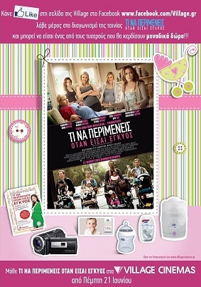 Τα Village Cinemas και η ταινία ΤΙ ΝΑ ΠΕΡΙΜΕΝΕΙΣ ΟΤΑΝ ΕΙΣΑΙ ΕΓΚΥΟΣ σας ενημερώνουν για το πόσο έτοιμοι είστε να γίνετε γονιοί. Μπείτε στην κλήρωση για να κερδίσεις μοναδικά δώρα: 1 βιντεοκάμερα Handycam HDR-PJ260V, 1 φωτογραφική μηχανή Cyber-shot™ DSC-WX100, 1 Walkman NWZ-S764, 2 ψηφιακές κορνίζες DFP-W700, 4 δωροεπιταγές για ρούχα mothercare (παιδική και βρεφική μόδα και μόδα εγκυμοσύνης) αξίας 100€ η κάθε μία, 1 καρότσι LiteWay, και 4 «Πακέτα Βρεφανάπτυξης CHICCO », τα οποία προσφέρουν τα καταστήματα “Mothercare” και 10 βιβλία «ΤΙ ΝΑ ΠΕΡΙΜΕΝΕΙΣ ΟΤΑΝ ΕΙΣΑΙ ΕΓΚΥΟΣ».