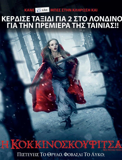 Μεγάλος διαγωνισμός Village! ΚΕΡΔΙΣΤΕ ένα ΤΑΞΙΔΙ ΓΙΑ 2 στο ΛΟΝΔΙΝΟ για την πρεμιέρα της ταινίας Red Riding Hood (Η Κοκκινοσκουφίτσα)!