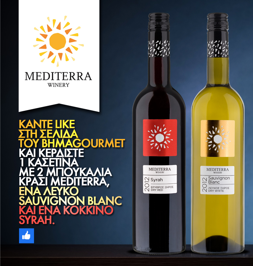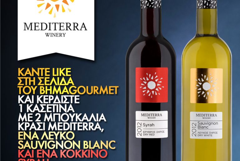 To BHMA GOURMET σας προσκαλεί να λάβετε μέρος στον διαγωνισμό της Mediterra Winery, κερδίζοντας 100 κασετίνες με 2 φιάλες κρασί, λευκό Mediterra Sauvignon Blanc και κόκκινο Mediterra Syrah.