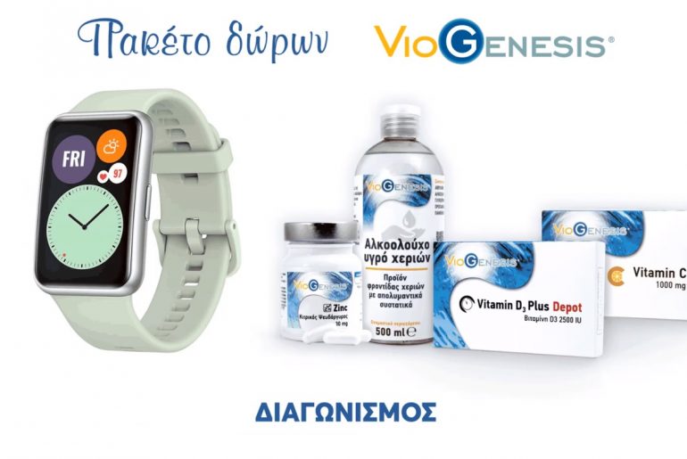 Η VioGenesis διοργανώνει διαγωνισμό και σας δίνει τη δυνατότητα να κερδίσετε ένα smartwatch Huawei Watch Fit Green και ένα πακέτο με τα εξής προϊόντα: