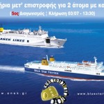 Το Vis Travel διοργανώνει διαγωνισμό και σας δίνει τη δυνατότητα να κερδίσετε ένα ακτοπλοϊκό εισιτήριο μετ’ επιστροφής κάθε εβδομάδα με το πλοίο “Πρωτέας” εκτός της περιόδου 01/08/2015 έως 20/08/2015. για τις Β. Σποράδες!