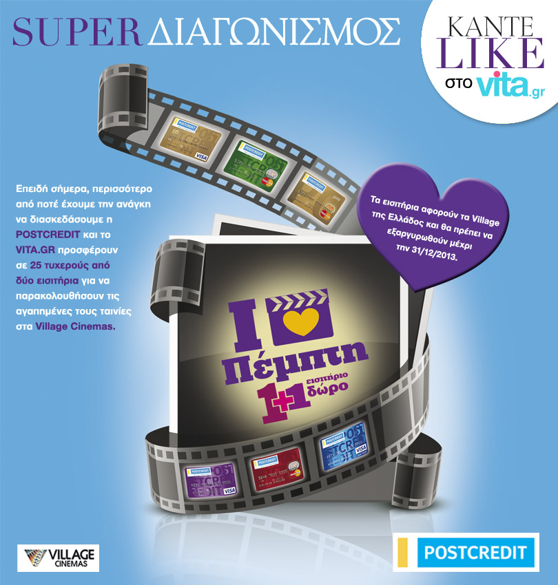 Το vita.gr και η PostCredit κατανοώντας τη μεγάλη σημασία της ψυχαγωγίας στην εποχή μας, προσφέρουν σε 25 τυχερούς από δύο εισιτήρια για να παρακολουθήσουν τις αγαπημένες τους ταινίες στα Village Cinemas!