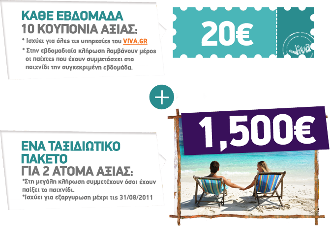 - Ογδόντα (80) κουπόνια έκπτωσης για τις υπηρεσίες του Viva.gr αξίας είκοσι (20) ευρώ το κάθε ένα.