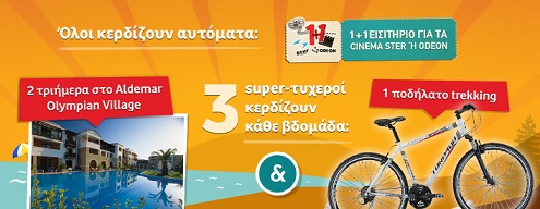 Η Vodafone διοργανώνει διαγωνισμό και σας δίνει τη δυνατότητα να κερδίσετε κάθε εβδομάδα 2 τριήμερα (2 διανυκτερεύσεις) στο ξενοδοχείο 5 αστέρων Aldemar Olympian Village για 2 άτομα με πρωινό στη Σκαφιδιά και 1 ποδήλατο trekking Tornado Sportage 28”, ιδανικό για βουνό.