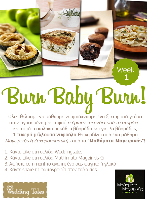 Το weddingtales.gr διοργανώνει διαγωνισμό και σας δίνει τη δυνατότητα να κερδίσετε 3 Μαθήματα Μαγειρικής η Ζαχαροπλαστικής!