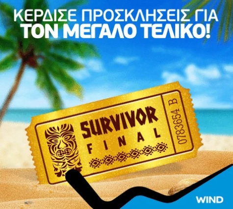 H Wind διοργανώνει διαγωνισμό και σας δίνει τη δυνατότητα σε 5 τυχερούς να κερδίσουν από μία διπλή πρόσκληση για τον Τελικό του τηλεοπτικού προγράμματος «Survivor»!