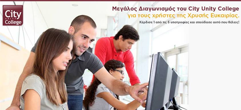 Η Χρυσή Ευκαιρία – Xe.gr διοργανώνει διαγωνισμό και σας δίνει τη δυνατότητα να κερδίσετε 5 υποτροφίες για bachelor ή master στο κολέγιο CITY UNITY.