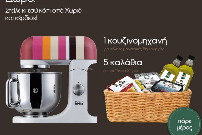 Το Χωριό διοργανώνει διαγωνισμό και σας δίνει τη δυνατότητα να κερδίσετε 200 πραγματικά βαζάκια, αντίστοιχο με αυτό που έχει οπτικοποιηθεί στον ιστότοπο με το προσωπικό σας κείμενο! Στην τελική κλήρωση ένας τυχερός θα κερδίσει μία κουζινομηχανή Kenwood kMix KMX84 και ένα καλάθι με προϊόντα, ενώ ακόμη 5 θα κερδίσουν από ένα καλάθι με προϊόντα Χωριό!