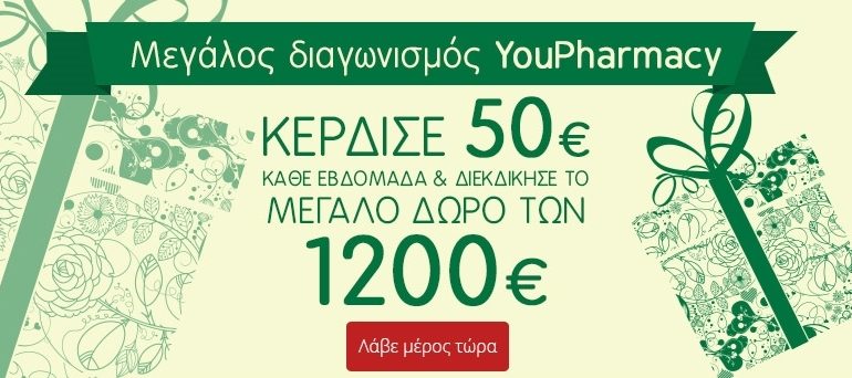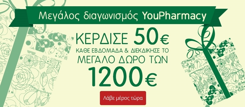 Κάνε τις online αγορές σου στο Youpharmacy.gr έως 11/01 και μπες αυτόματα σε εβδομαδιαίες κληρώσεις για μια δωροεπιταγή 50€ κάθε εβδομάδα και στη μεγάλη κλήρωση όπου ένας τυχερός θα κερδίσει 12 δωροεπιταγές των 100€!