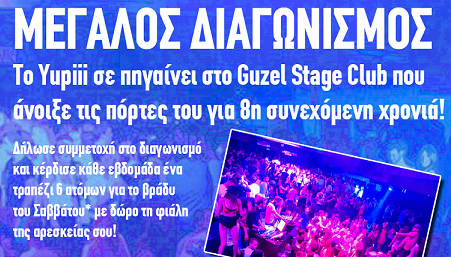 Το yupiii.gr διοργανώνει διαγωνισμό και σας δίνει τη δυνατότητα να κερδίσετε κάθε εβδομάδα ένα τραπέζι 6 ατόμων στο Guzel για το βράδυ του Σαββάτου με δώρο τη φιάλη της αρεσκείας σας.